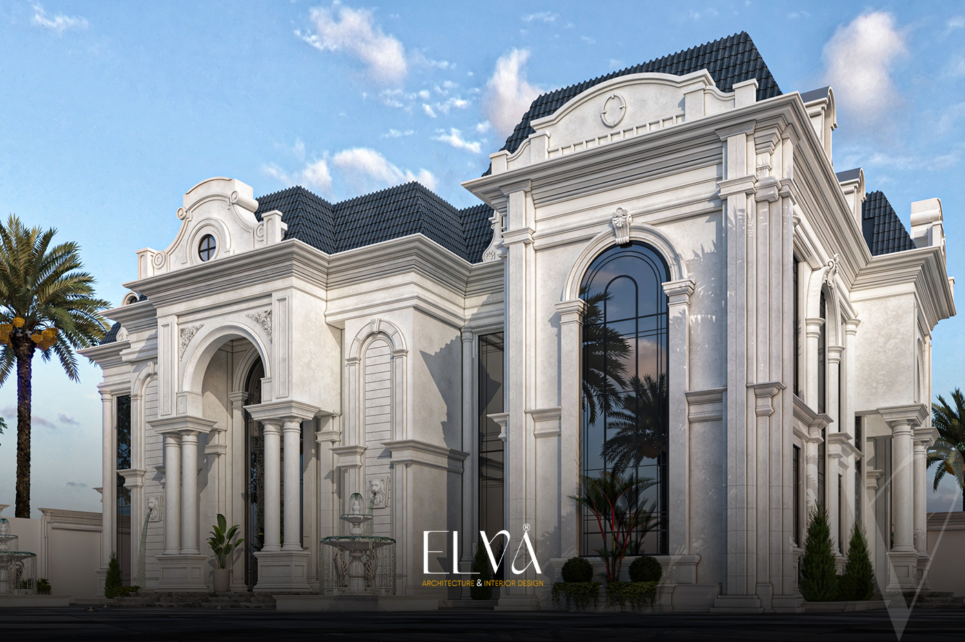 A luxurious Neo-Classical villa design located in Riyadh, Saudi Arabia, spanning 1,000 sqm.